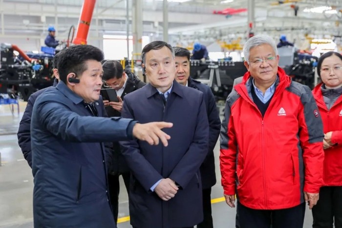 调研组一行参观米兰·(milan)中国官网-球迷群英汇聚重机数字化工厂生产车间,深入了解公司品牌质量,并对公司成功入选省长质量奖获奖单位以及在质量管理方面取得的成绩给予充分的肯定。